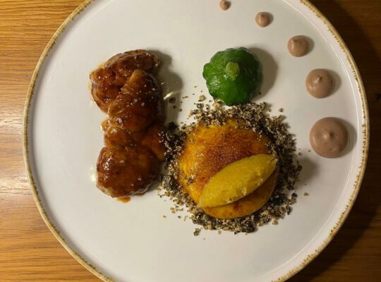 Le menu de L’antidote est un vrai festival de saveurs ! La soupe à l’oignon revisitée nous surprend avec sa touche moderne. La crème de girolles, avec ses ingrédients locaux, nous fait redécouvrir les champignons sous un nouveau jour. Et pour les amateurs de fine gastronomie, le foie gras poêlé aux noisettes torréfiées et sa réduction de Porto sont un pur délice ! On ne peut pas parler de ce lieu sans évoquer le poulpe poêlé, une spécialité qui nous fait voyager en mer. En dessert, l’ananas rôti au rhum, accompagné de gelée de pomme Granny Smith et de fenouil, est une petite explosion de fraîcheur. Chaque plat est préparé avec soin, mettant en avant des ingrédients bio qui nous font du bien.